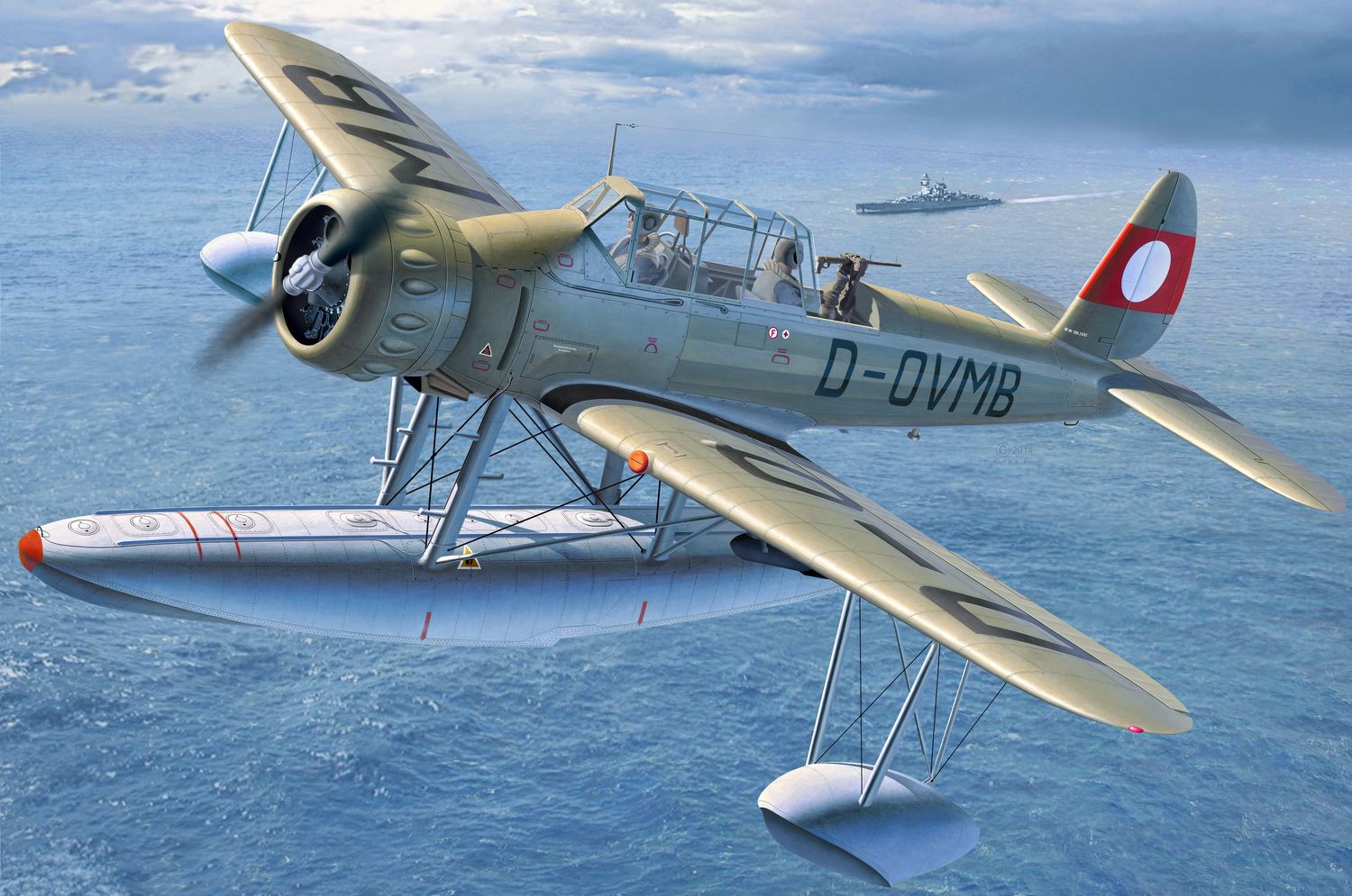 Die echte Aradao Ar 196 könnt Ihr euch hier in dieser britischen Dokumentation in Originalaufnahmen anschauen. Schon sehr beeindruckend zu sehen, wie das kleine Flugzeug mit dem Seegang zu kämpfen hat: