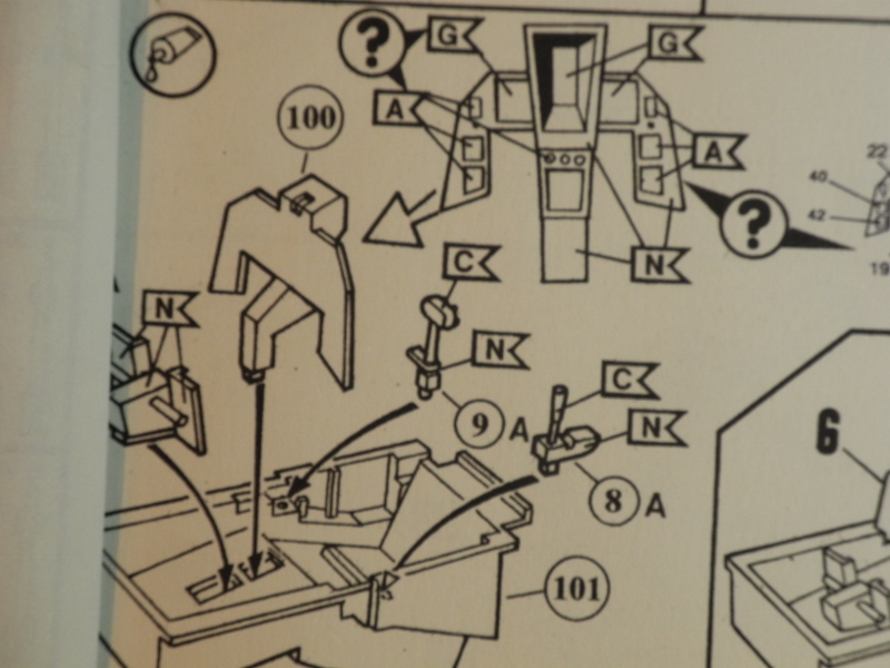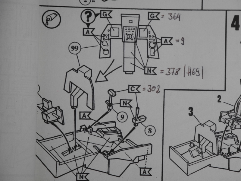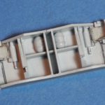 Der Bauanleitung nicht ganz folgend (den Grund hierfür, nenne ich an späterer Stelle), begann ich mit Bauschritt 3 bis 5 – also der ersten Cockpitwanne. Da die Bauteile mit der Nummer 8 und 9 recht winzig waren, beschloss ich diese schon vor der Lackierung an der Cockpitwanne anzubringen. Da ich mit den revelleigenen Farben „auf Kriegsfuß“ stehe, griff ich auch bei diesem Projekt auf mein bevorzugtes Farbsortiment zurück. Eine ausführliche Recherche im weltweiten Netz ließ vermuten, dass ich mit dem Gunze Farbton H317 nicht ganz daneben liegen würde.