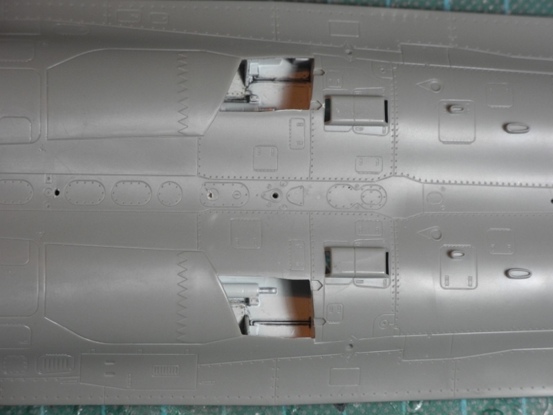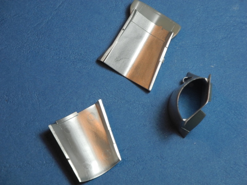 Anschließend kümmerte ich mich um die beiden Lufteinlässe; wobei ich die Auswerfermarken auf der innen liegenden Seite einfach ignorierte (sehen kann man die nach der Montage sowieso nicht mehr) und nur eine Lage Alu aufbrachte. Etwas Schade, dass sich die Lufteinlässe im „Nichts“ verlieren. Wenn aber nicht gerade jemand mit einer Taschenlampe hineinleuchtet (aber wer macht schon so etwas?), ist auch dieses kleine Manko aus meiner Sicht vernachlässigbar.