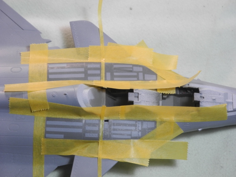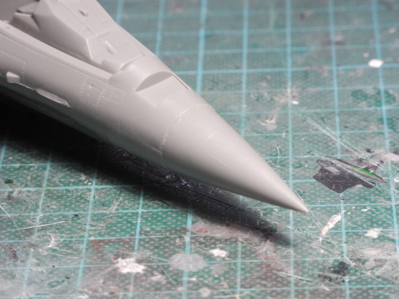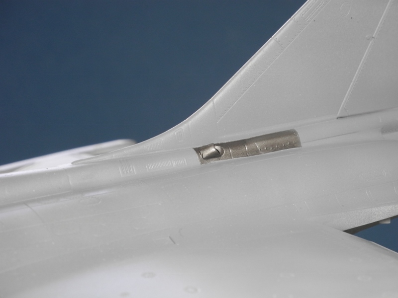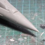 Revell weist zwar nicht explizit darauf hin, vor der Montage des Radoms sollte der vorhandene Hohlraum mit Gewichten (hier Gardinenblei) beschwert werden, um den berüchtigten Tail-Sitter zu vermeiden.