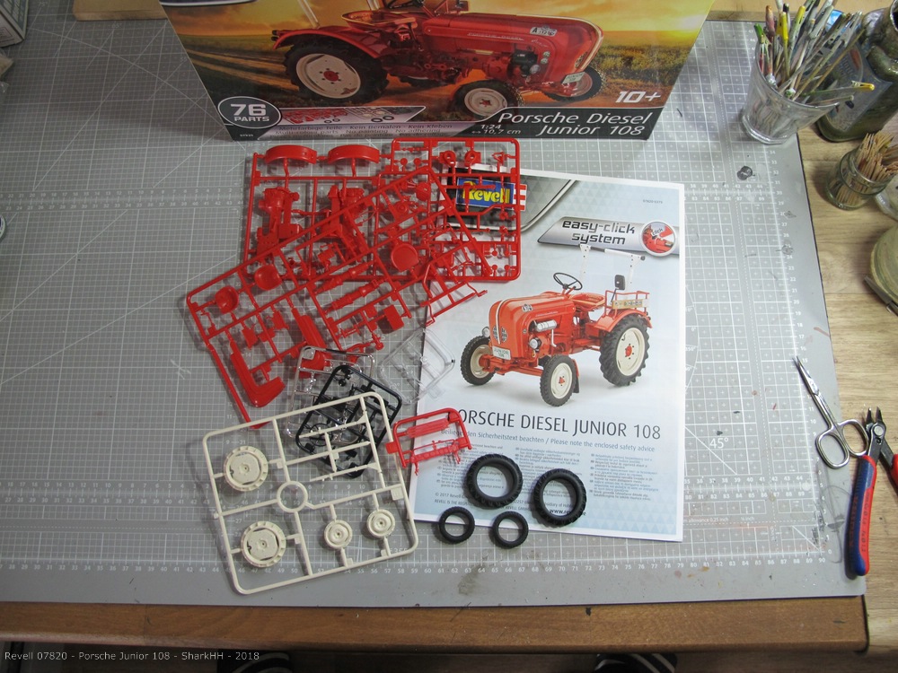 Irgendwann kommt man in das Alter, in dem man seine Kindheitsträume realisieren kann. So gönnte ich mir vor ein paar Wochen meinen ersten Porsche. Und zwar den Revell easy-click Bausatz des Porsche Junior 108 Traktors, der ab den 50er Jahren bei der Porsche Diesel Motorenbau GmbH am Bodensee gebaut wurde. Wer mehr zu Technik und Werdegang erfahren möchte, bemühe bitte dieses Internet.