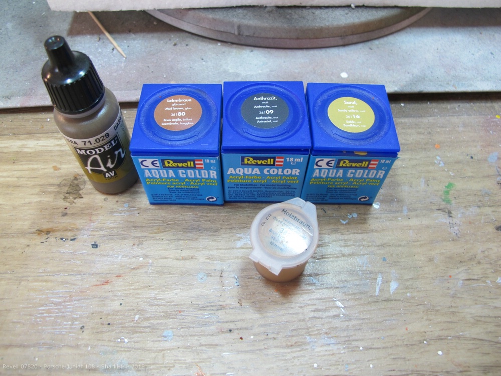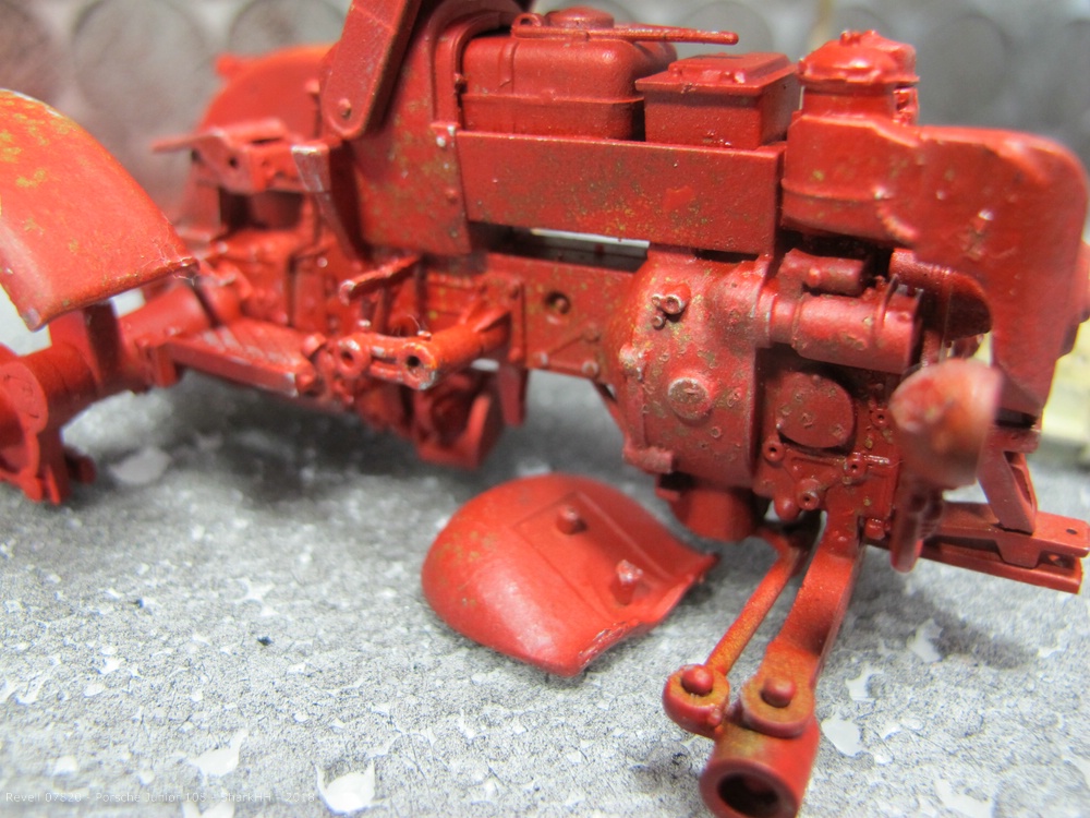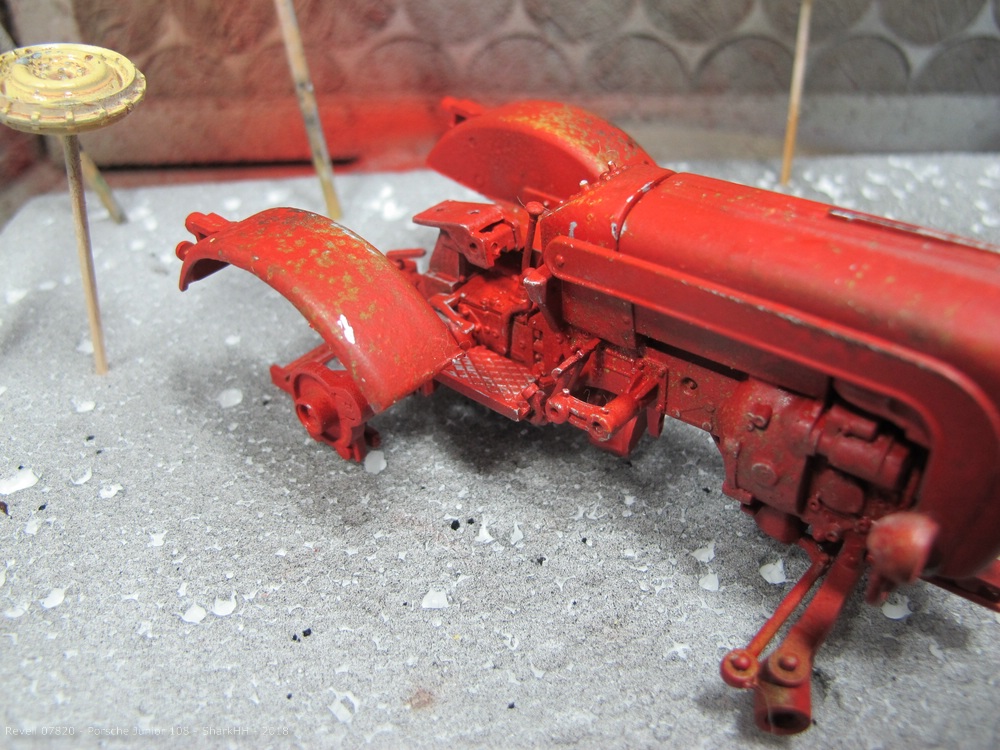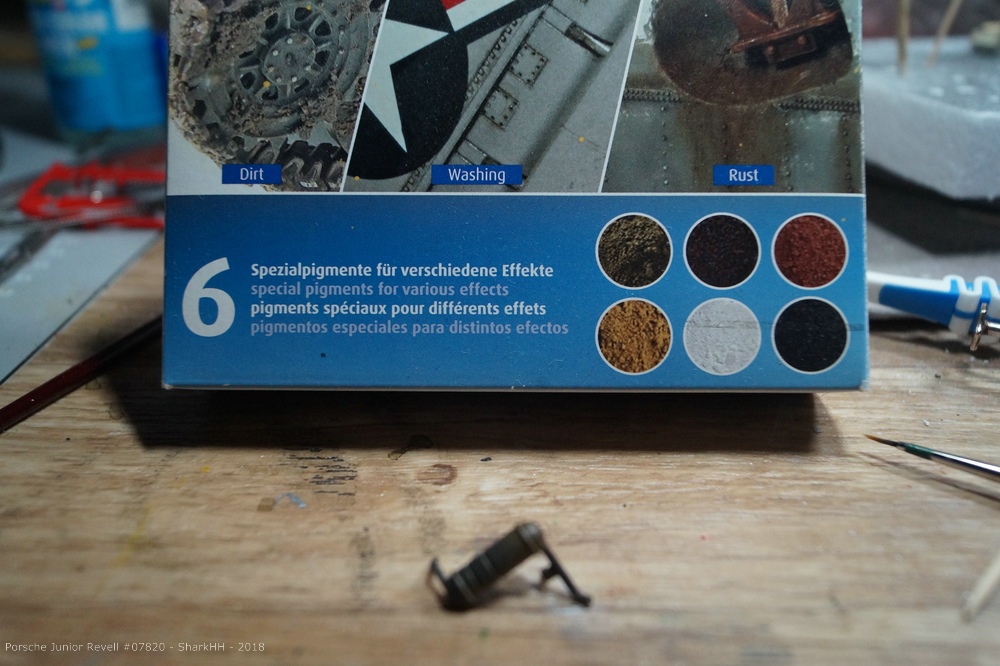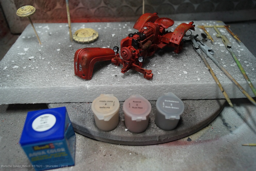 Zum Einsatz kamen die Revell Aqua Farben sowie das Pigment-Set von Revell, um weiteren Rost und Verschmutzungen bzw. Verwitterungen aufzubringen. Die Pigmente wurde durch den Klarlack von Revell auf dem Modell fixiert.