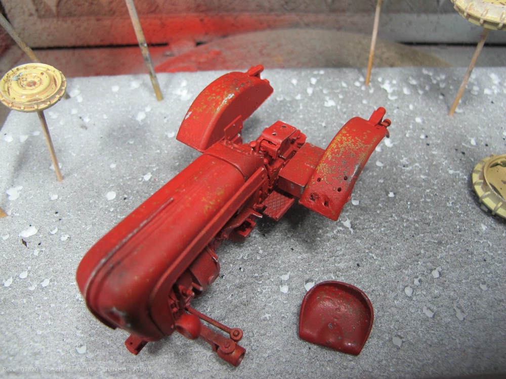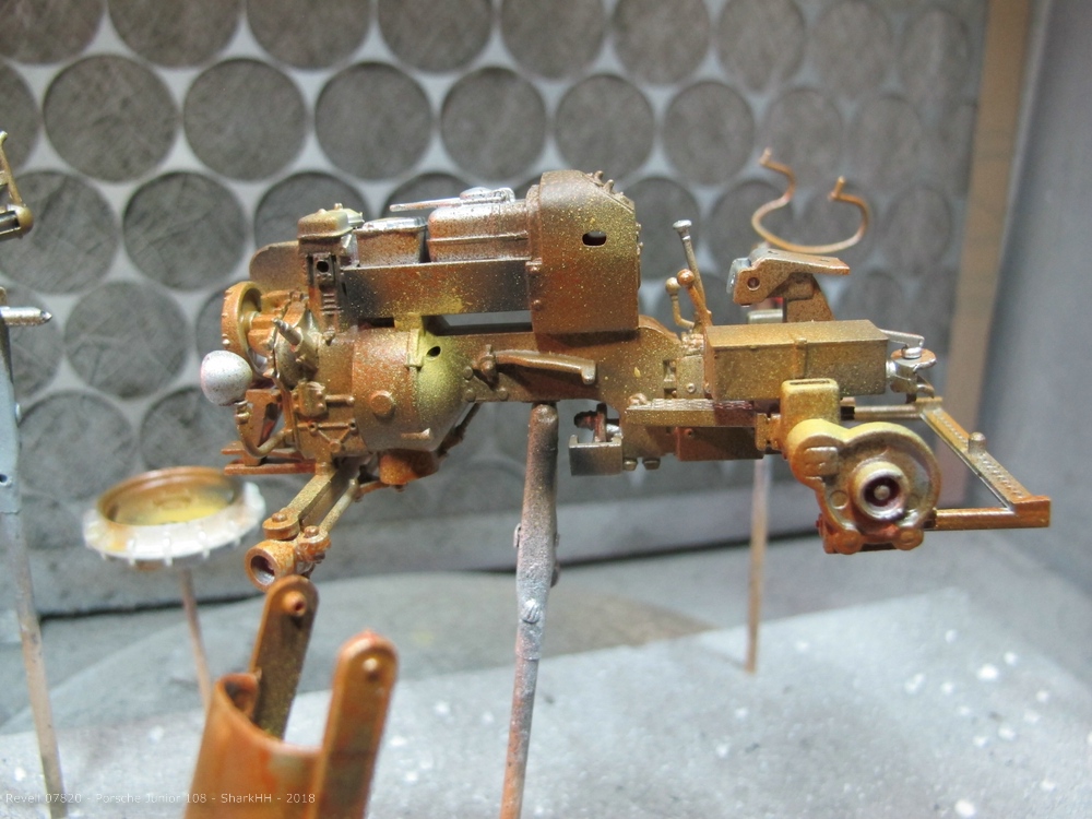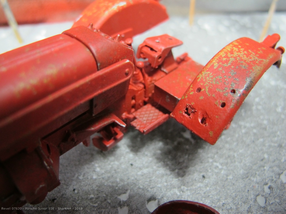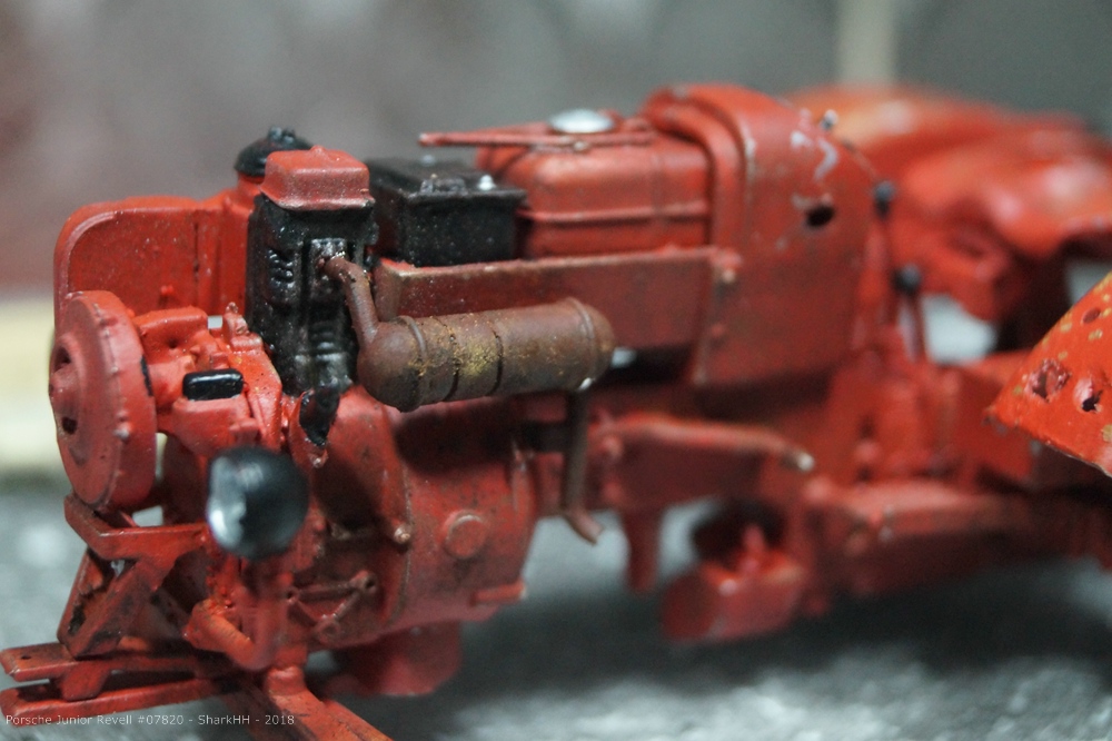 Zum Einsatz kamen die Revell Aqua Farben sowie das Pigment-Set von Revell, um weiteren Rost und Verschmutzungen bzw. Verwitterungen aufzubringen. Die Pigmente wurde durch den Klarlack von Revell auf dem Modell fixiert.