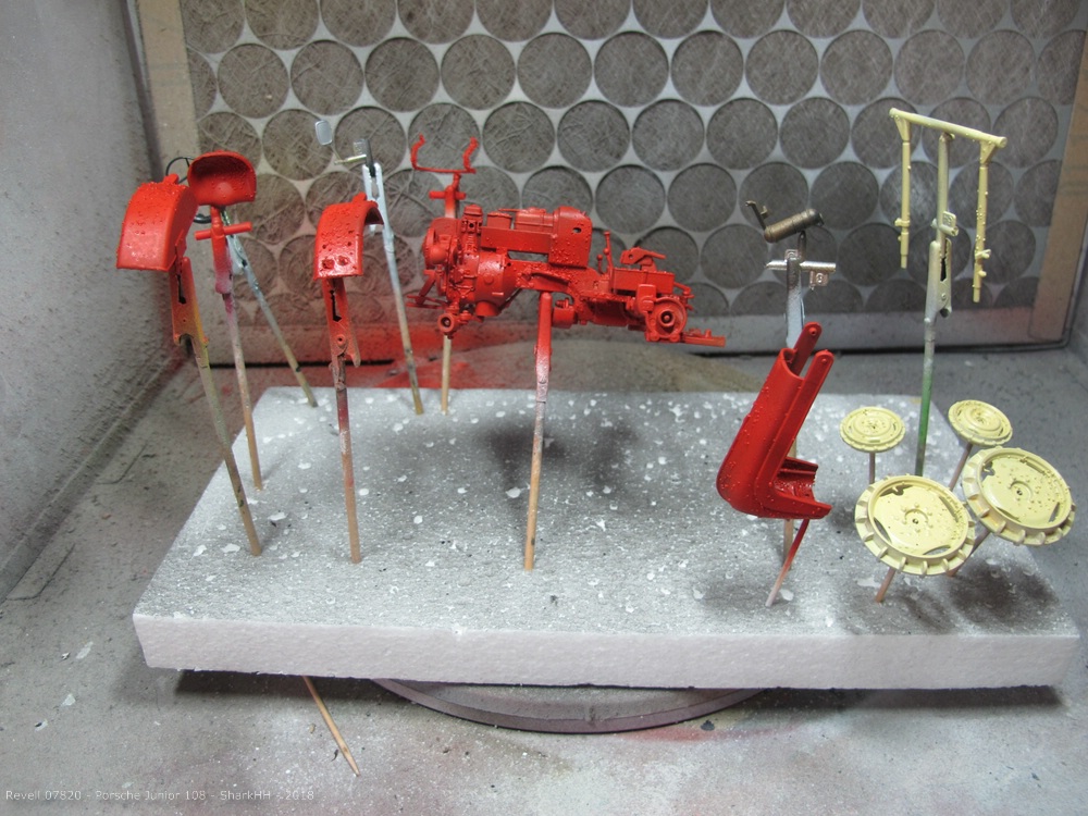 Die Teile sind sauber aus der Form gekommen. Ich habe nur eine Sinkstelle gefunden. Der Bau resp. das Zusammenstecken geht flott von der Hand. Ich habe knapp 1,5 Stunden gebraucht, bis alle Teile für das Lackieren vorbereitet waren.