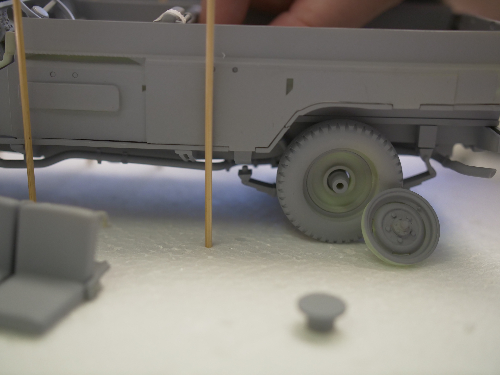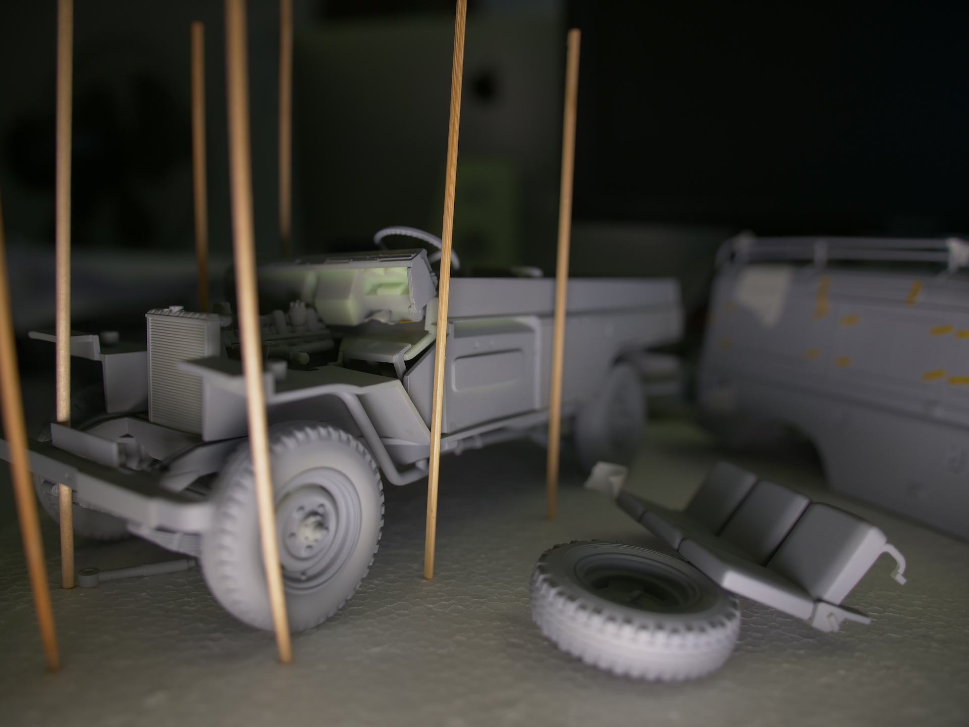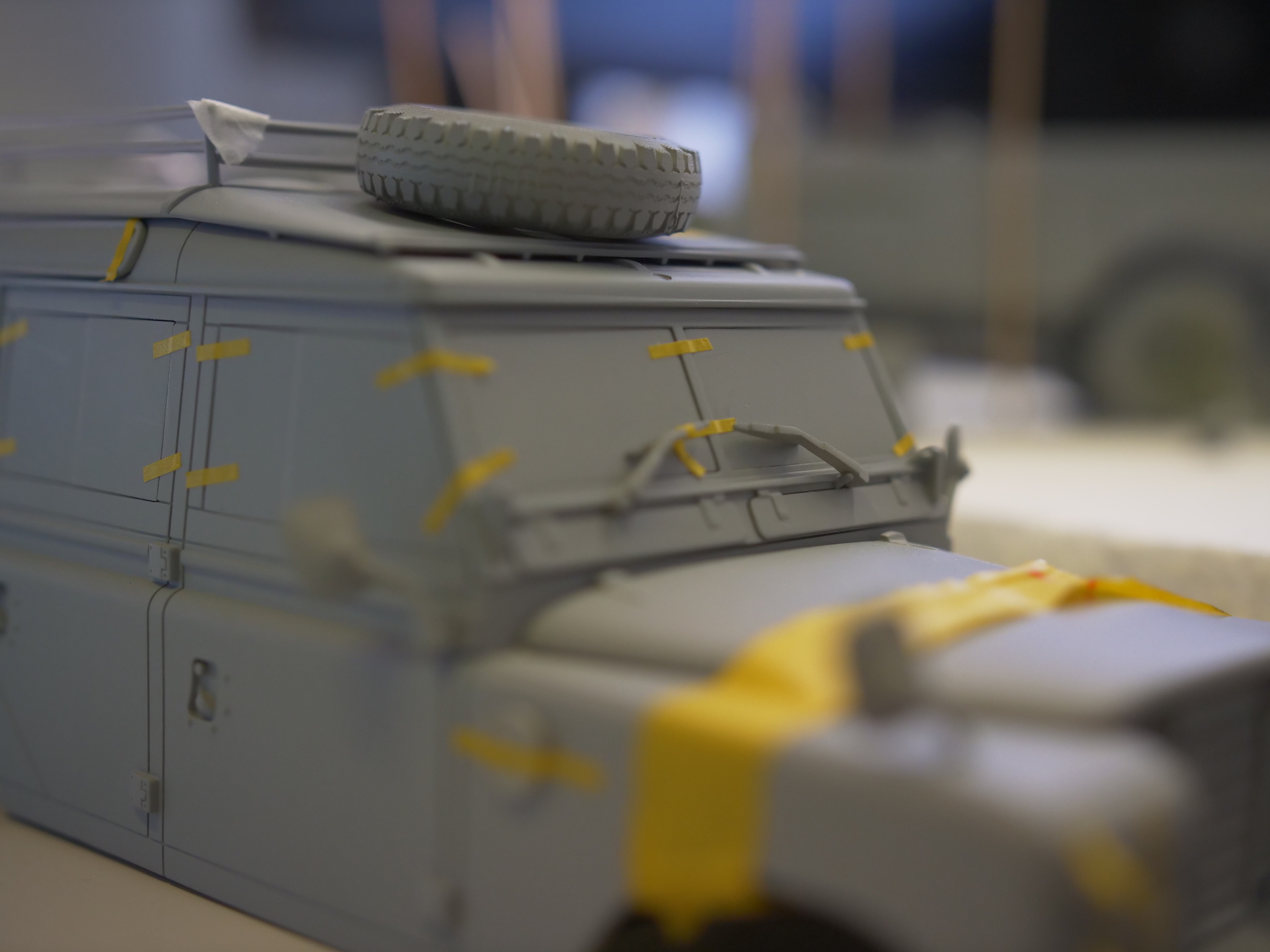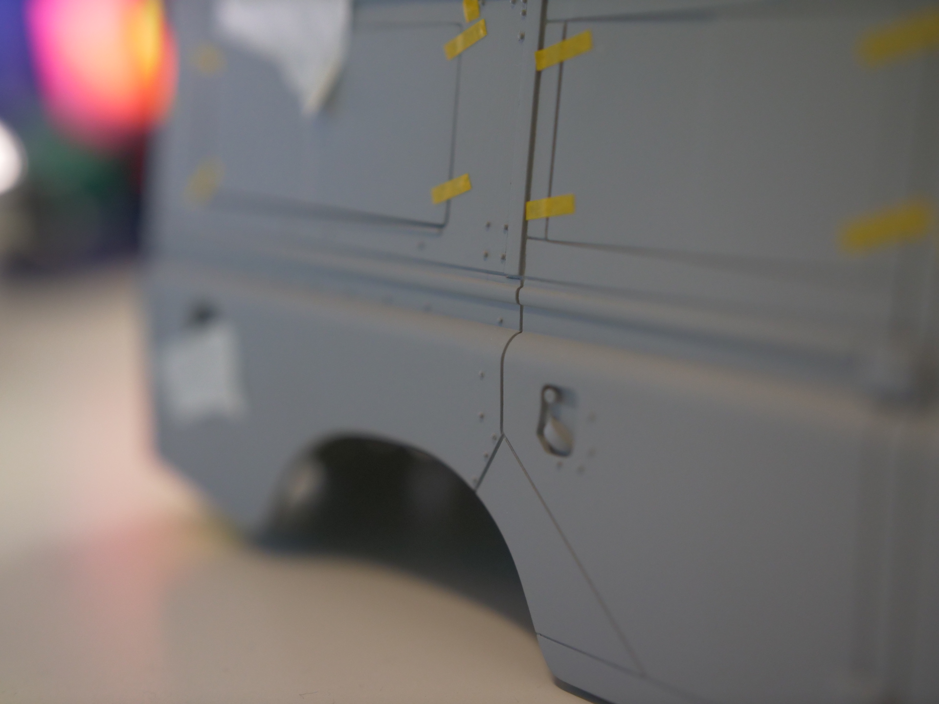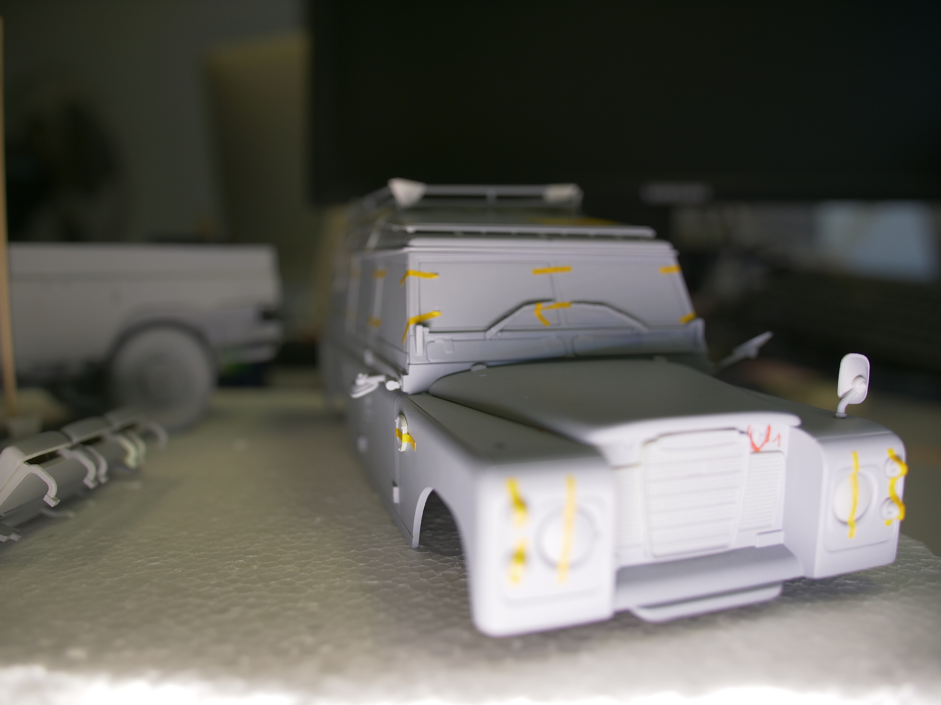 Hier seht Ihr die ersten Testshots unseres Landie Defender Series III! Bis zu einem solchen Testhot ist es ein langer Weg. Von der Recherche eines Fahrzeugs, das sich im Originalzustand befindet und vom Besitzer zur Besichtigung zur Verfügung gestellt wird, gefolgt von einer aufwendigen Fotosession, aus deren Aufnahmen das erste 3D-Modell erzeugt wird. Wie die Aufnahmen für die Erstellung des CAD-Modells gemacht wurden, haben wir Euch ja bereits hier gezeigt.