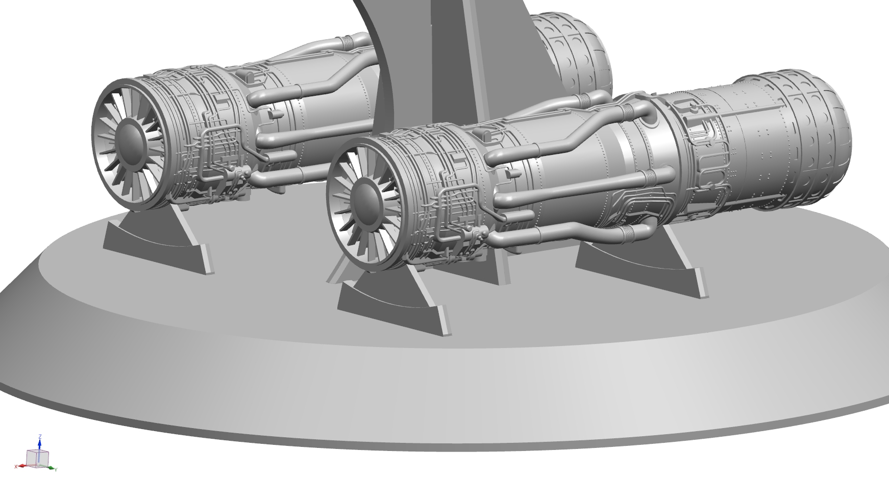 Darum bekommen die Triebwerke ihren eigenen Platz auf dem Präsentationsständer und das sieht dann so aus: