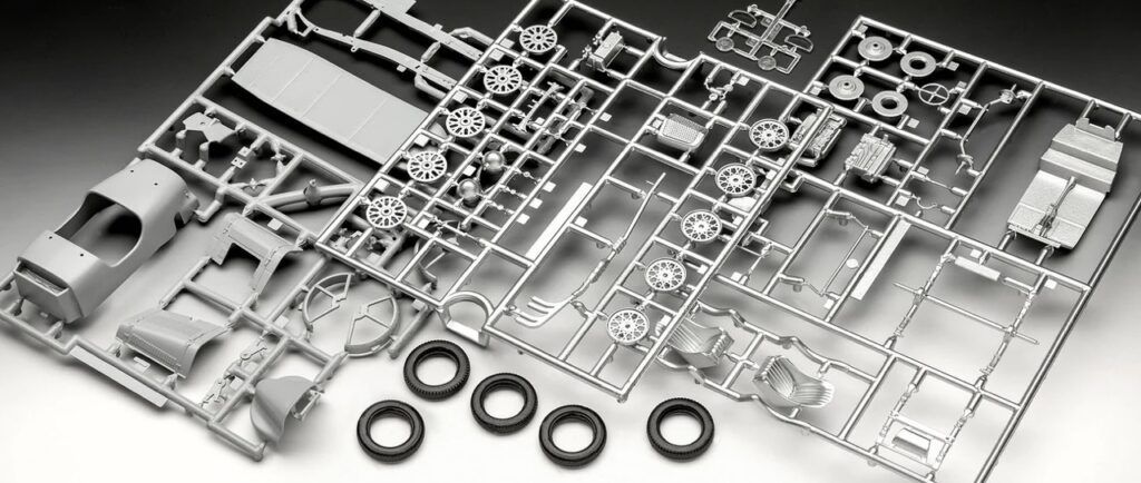 As a reissue, the Aston Martin Ulster returns to our range. Article 077519090, scale 1:32, 70 individual parts, difficulty level Level 5, age recommendation from 13 years, price 14.99 Euro. Included are the unpainted plastic model kit, an illustrated multilingual building instruction, and a decal sheet for historical racing versions.